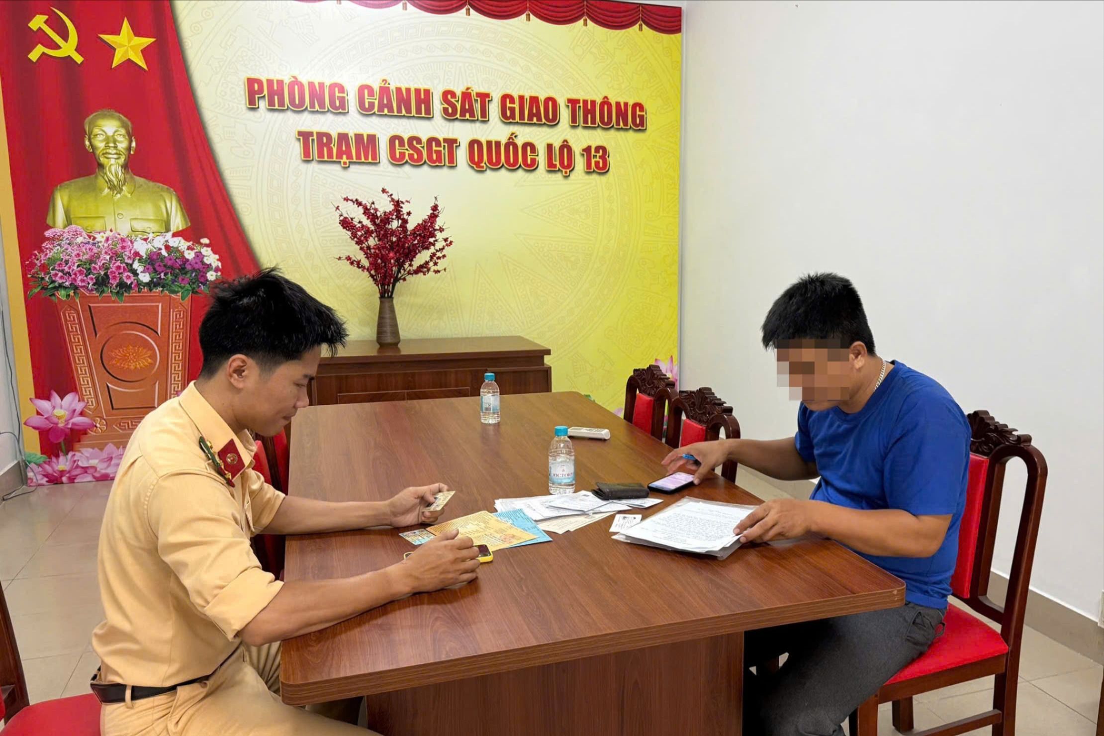 CSGT làm việc với tài xế. Ảnh: PC08