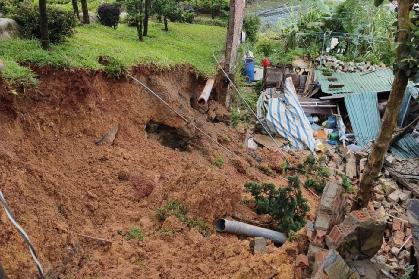 Thông tin ban đầu, rạng sáng 7/11, một đoạn taluy cao khoảng 5m, dài 6m bất ngờ đổ sập, vùi lấp một phần căn nhà tôn của người dân tại đường Lê Văn Tám (phường Xuân Hương - Đà Lạt, tỉnh Lâm Đồng).