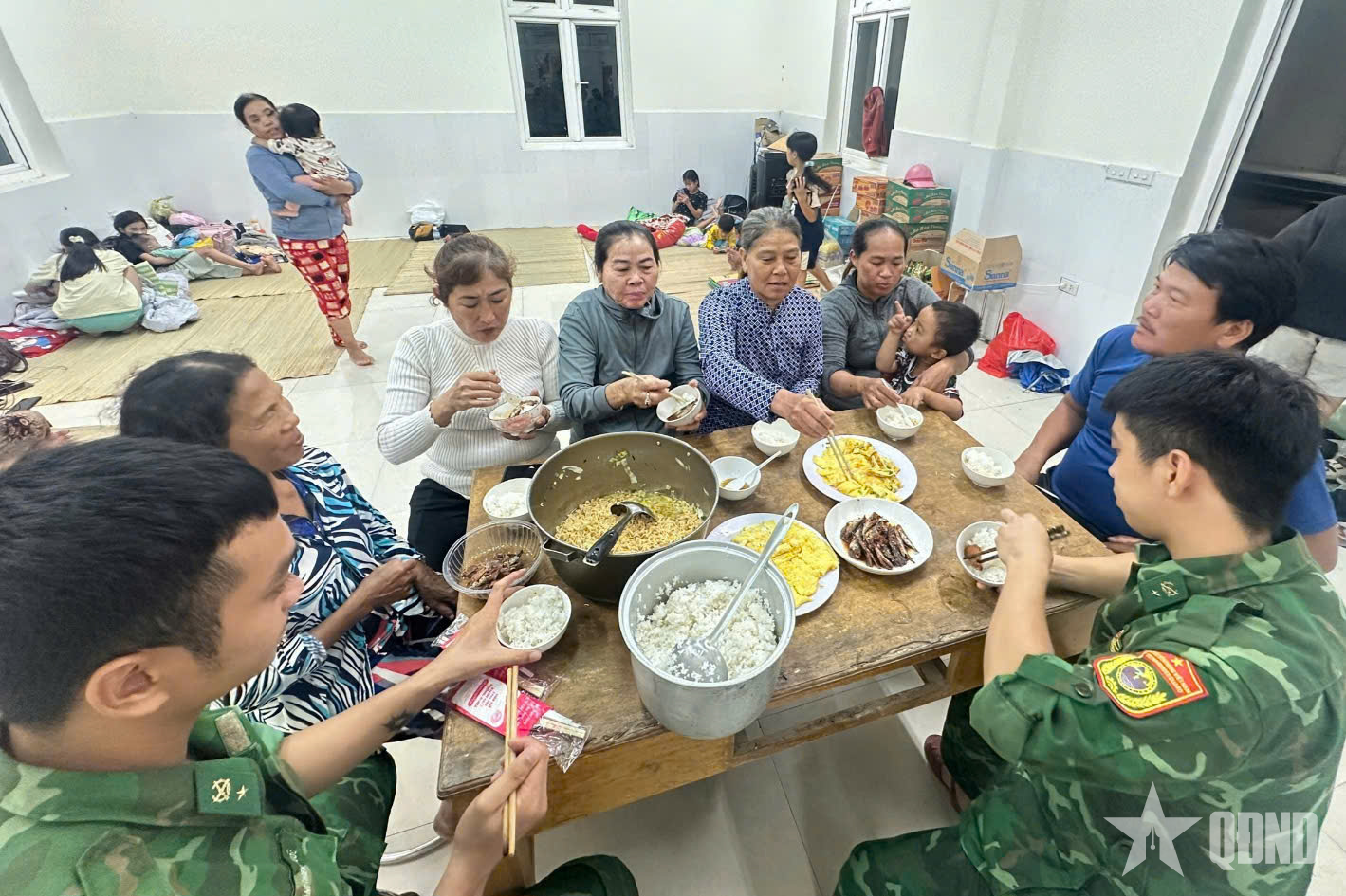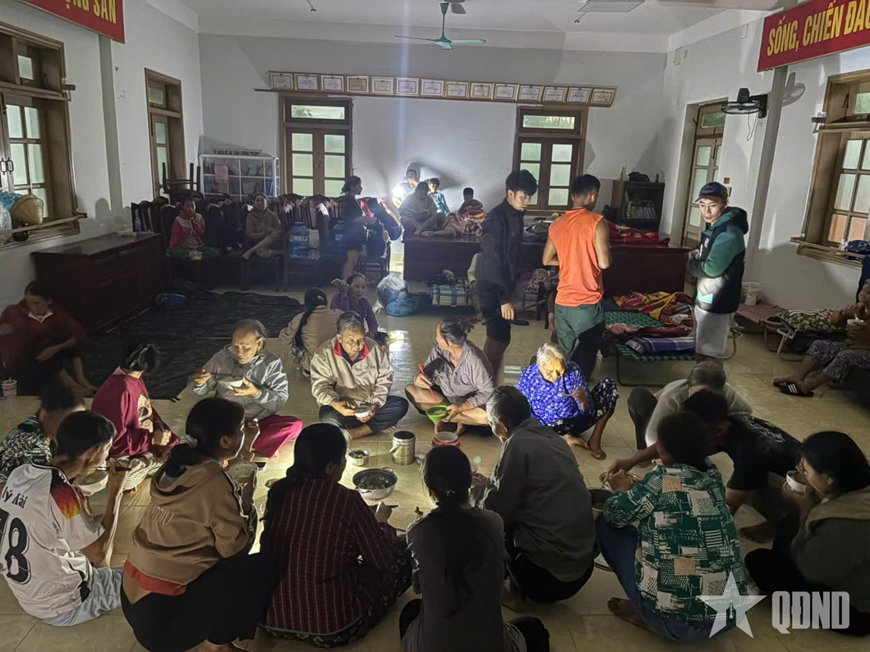 Đồn Biên phòng Xuân Hòa đảm bảo cơm tối và theo dõi sức khỏe cho người dân trú bão tại đơn vị.