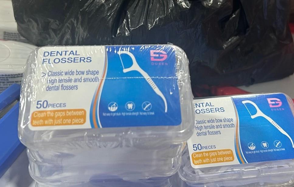 Một loại tăm chỉ nha khoa in tiếng nước ngoài trên bao bì, không rõ nguồn gốc xuất xứ.