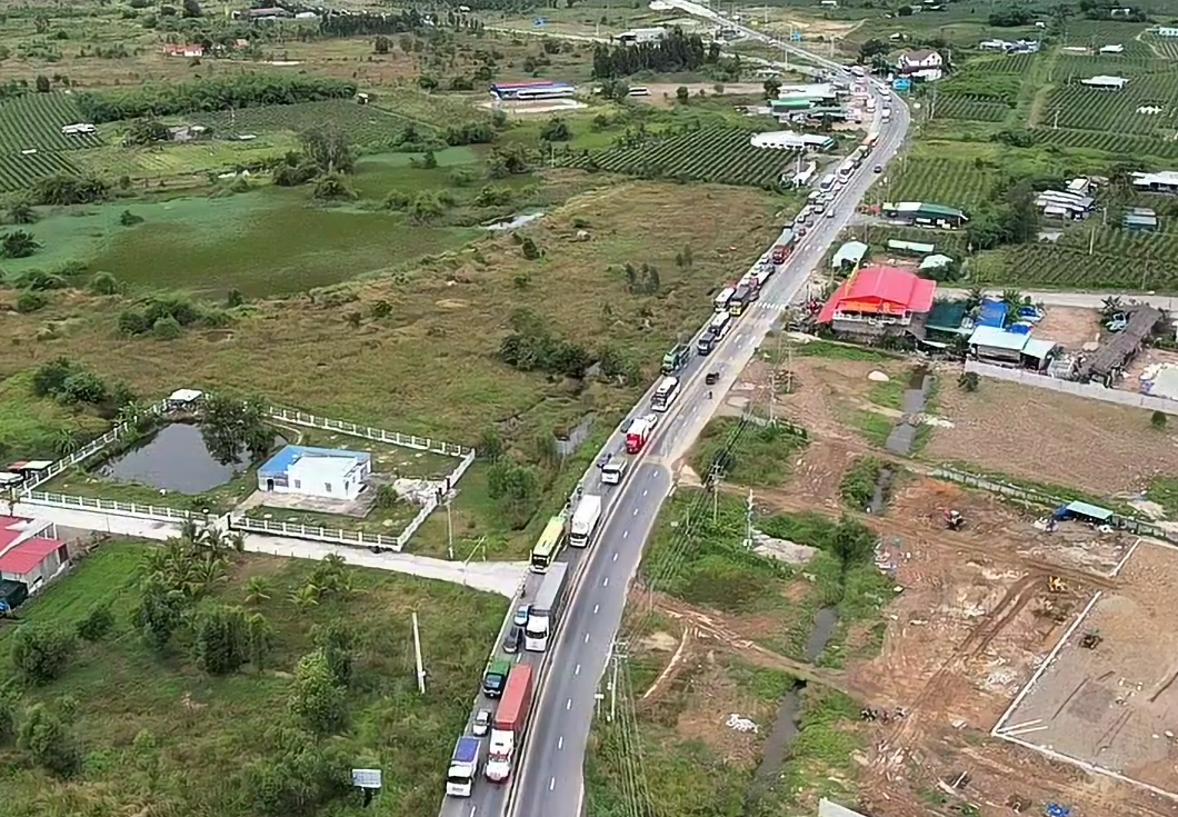 Các phương tiện nối đuôi nhau ra khỏi nút giao Phan Thiết (tỉnh Lâm Đồng) để di chuyển ra quốc lộ 1A