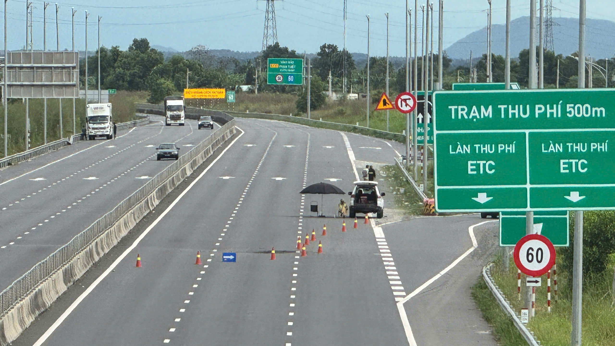 Trên tuyến đường cao tốc Cam Lâm – Vĩnh Hảo (hướng Nam - Bắc, qua tỉnh Lâm Đồng và Khánh Hòa), lực lượng chức năng điều tiết phương tiện ra cao tốc tại nút giao km92, tiếp tục di chuyển trên quốc lộ 1A.