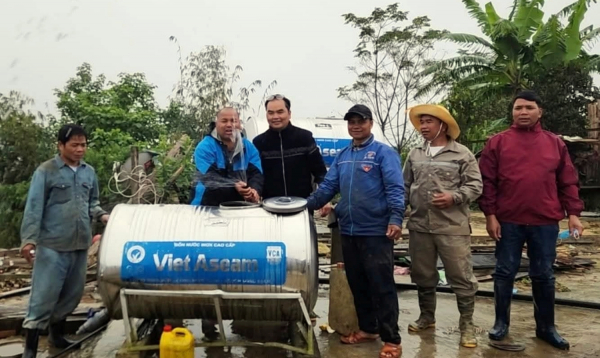 Hỗ trợ nước sạch tạm thời cho người dân vùng sạt lở.