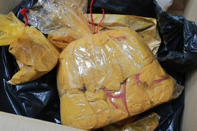 Tại thời điểm kiểm tra, tổ công tác đã phát hiện vợ chồng Nguyễn Văn Vinh đang chế biến riềng xay tươi có trộn chất tẩy đường và chất Vàng O, là những chất hóa học bị nghiêm cấm sử dụng trong chế biến thực phẩm. Tại hiện trường, lực lượng chức năng đã thu giữ gần 2 tấn riềng xay thành phẩm có màu vàng đậm và vàng nhạt đều được trộn chất Vàng O và chất tẩy đường.