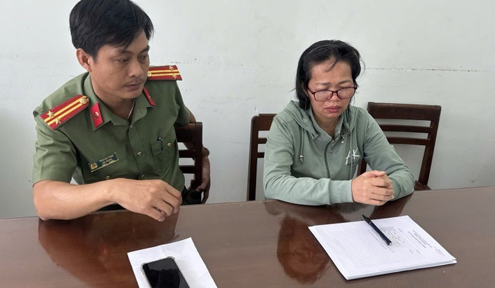 Võ Thị Phụng ( phải) tại buổi làm việc với cơ quan CA. Ảnh: ĐVCC