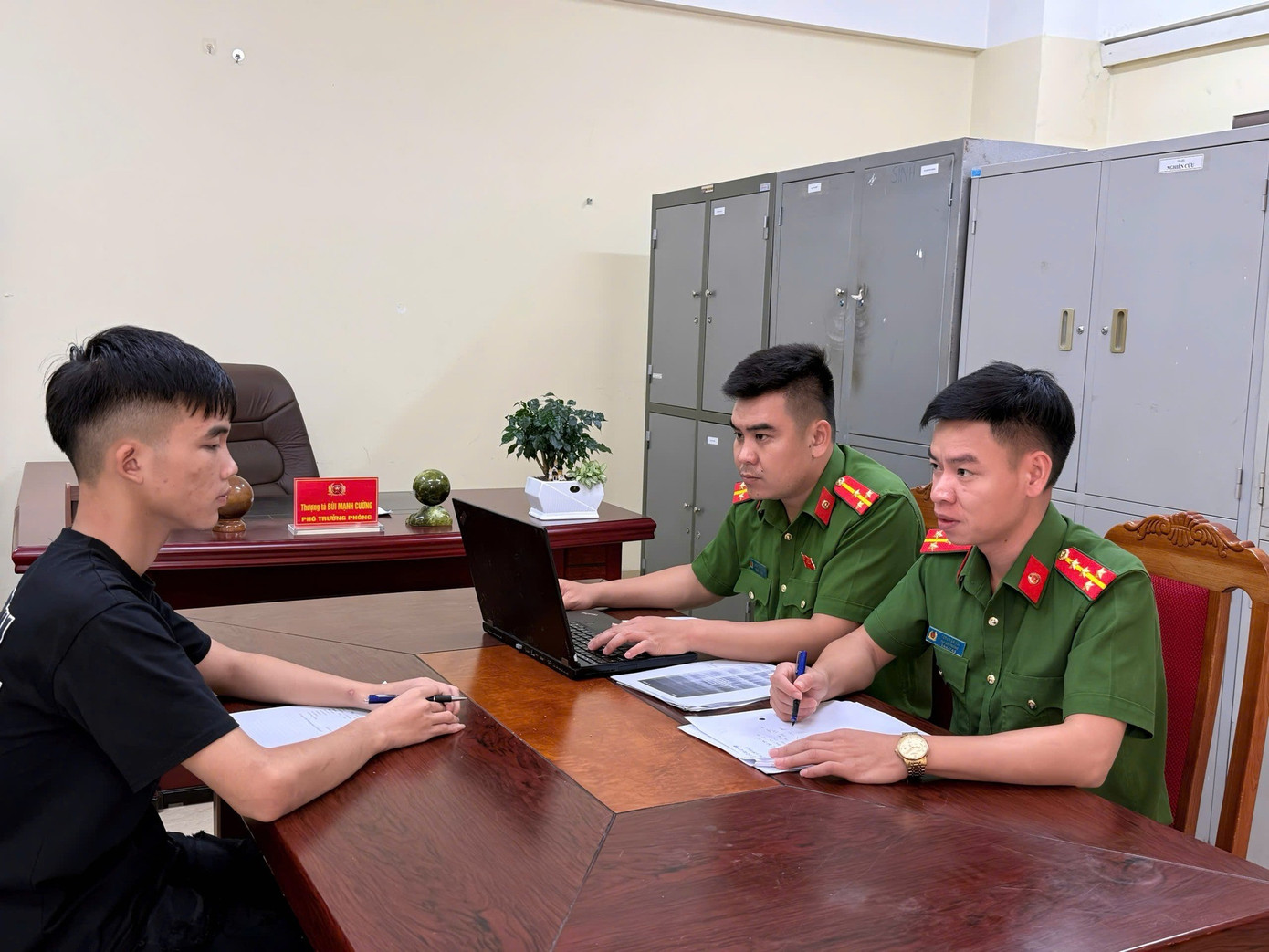 Công an tỉnh Sơn La lấy lời khai của đối tượng.