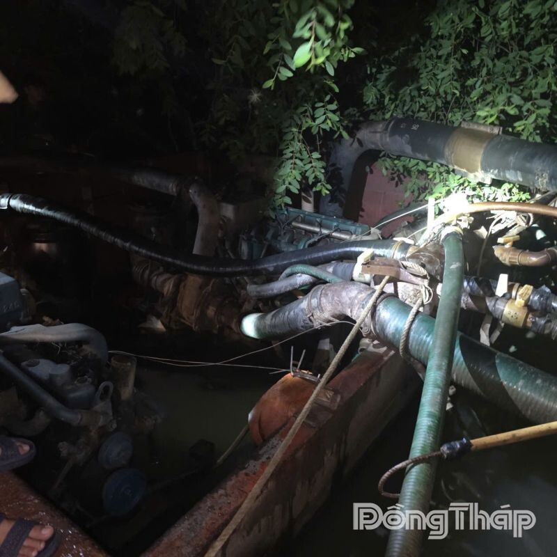 Thiết bị bơm hút gắn trên phương tiện.Khi tiếp cận được các phương tiện, khoảng 4 - 5 đối tượng trên phương tiện nhanh chóng nhảy xuống sông và bơi vào bờ để tẩu thoát. Tổ công tác lập tức triển khai lực lượng truy đuổi. Tuy nhiên, do trời tối, địa hình phức tạp, với nhiều kinh, rạch chằng chịt, cùng với sự am hiểu địa bàn của các đối tượng, lực lượng chức năng gặp nhiều khó khăn trong công tác truy bắt. Tổ công tác tiến hành lập biên bản vụ việc, thu giữ phương tiện và tang vật, đồng thời triển khai các biện pháp nghiệp vụ để truy xét, làm rõ danh tính các đối tượng liên quan.Theo lãnh đạo Trạm Cảnh sát đường thủy Vàm Kỳ Hôn, lực lượng Cảnh sát giao thông đã theo dõi và nắm bắt thông tin về hoạt động của các đối tượng này từ lâu. Đây là những đối tượng rất manh động, chọn thời điểm đêm khuya hoạt động để tránh sự phát hiện. Đơn vị đang phối hợp với các cơ quan chức năng triển khai các biện pháp nghiệp vụ để truy xét, làm rõ danh tính và xử lý nghiêm theo quy định pháp luật.