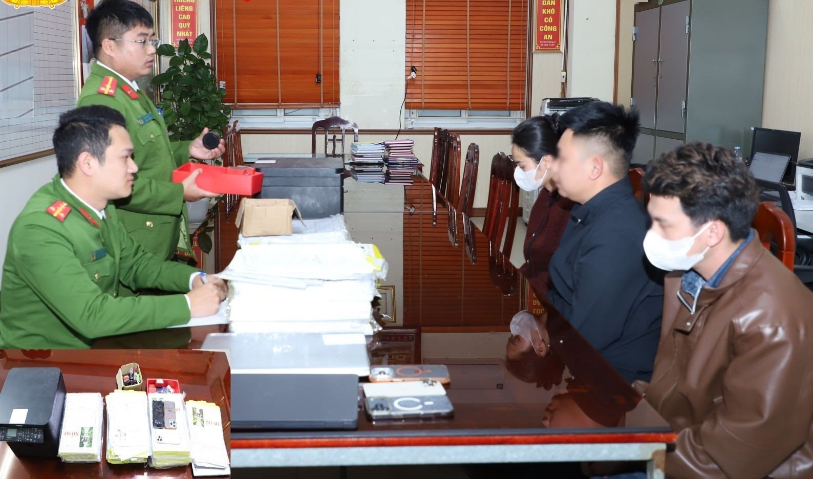 Các đối tượng tại cơ quan Công an. Ảnh: Công an Ninh Bình
