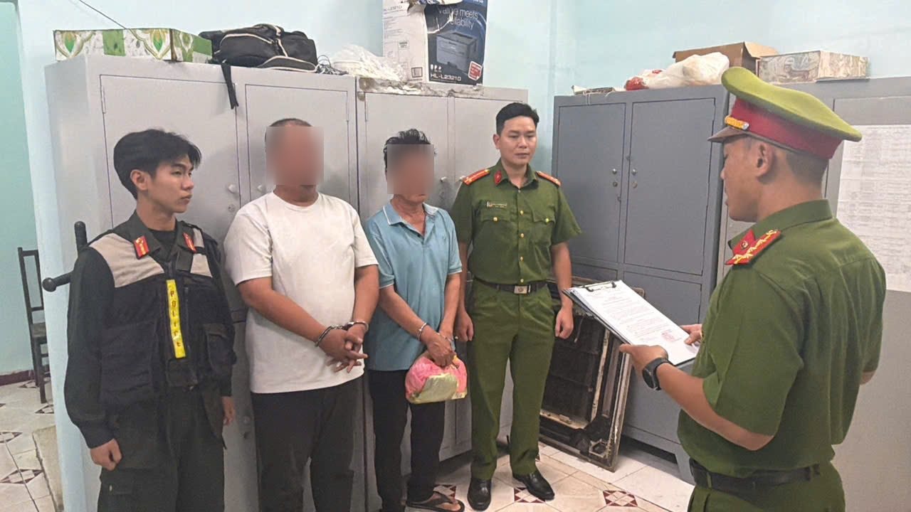 Lê Tấn Cường và Nguyễn Văn Hùng tại cơ quan công an (Ảnh: Công an cung cấp)