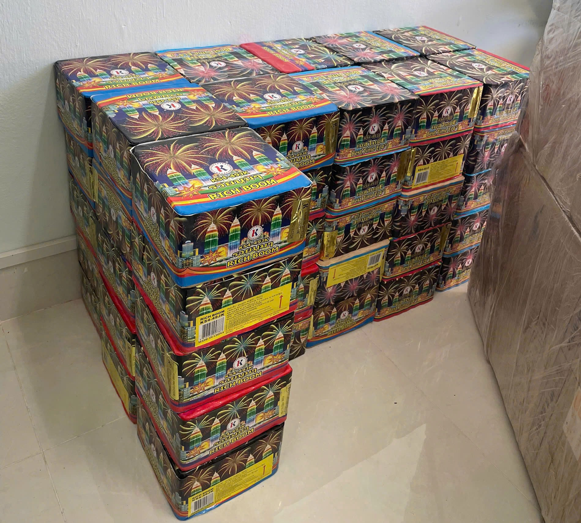 Số pháo hoa nổ do Nguyễn Viết Vinh mua bán, vận chuyển trái phép bị tạm giữ. Ảnh: Công an cung cấp