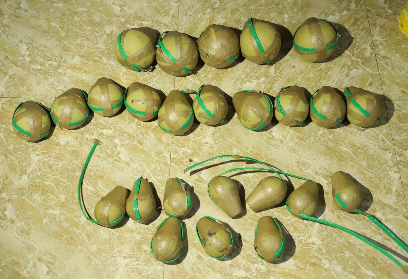 Tại hiện trường, lực lượng Công an thu giữ 25 quả pháo hoa nổ tự chế, có tổng trọng lượng khoảng 11kg.