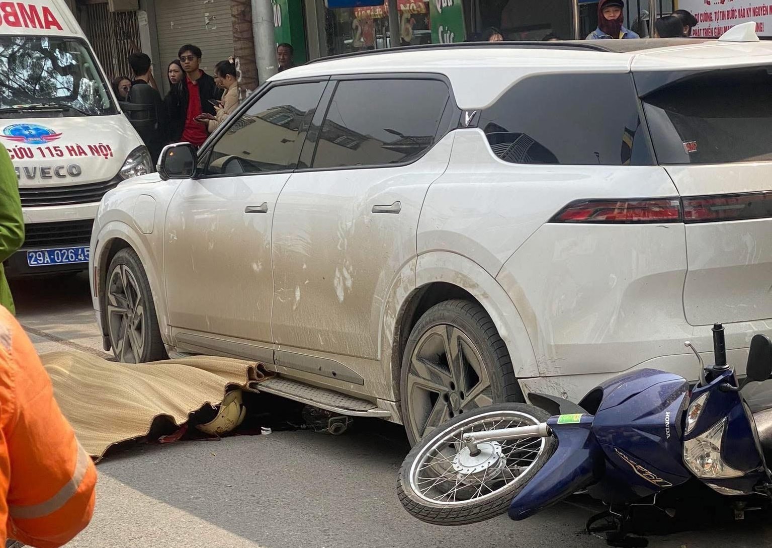 Tại hiện trường, 1 người phụ nữ được xác định đã tử vong, 1 người bị thương. Ô tô trong quá trình lùi đã cuốn xe máy vào gầm xe, gây hư hỏng nặng cho cả 2 phương tiện.