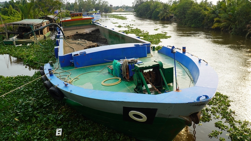 Tang vật các phương tiện bơm cát không rõ nguồn gốc. (Ảnh:CA)