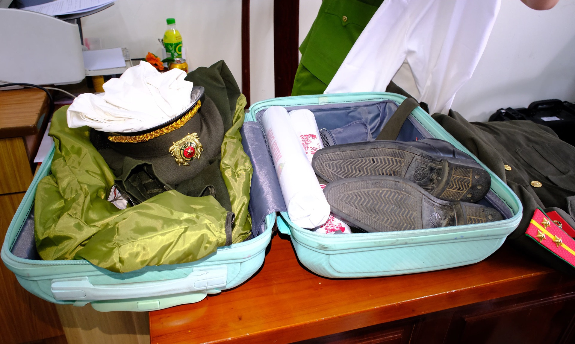 Tang vật thu giữ là bộ quân phục công an do Thiện đặt mua trên mạng xã hội. Ảnh: CACC