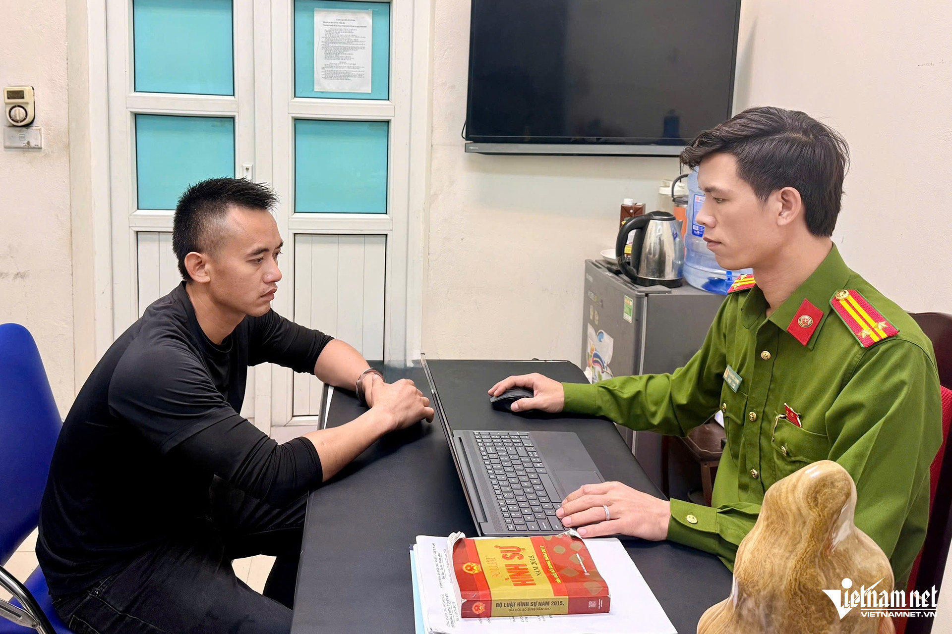 Tài xế Trần Anh Phương tại trụ sở cơ quan công an. Ảnh: CACC