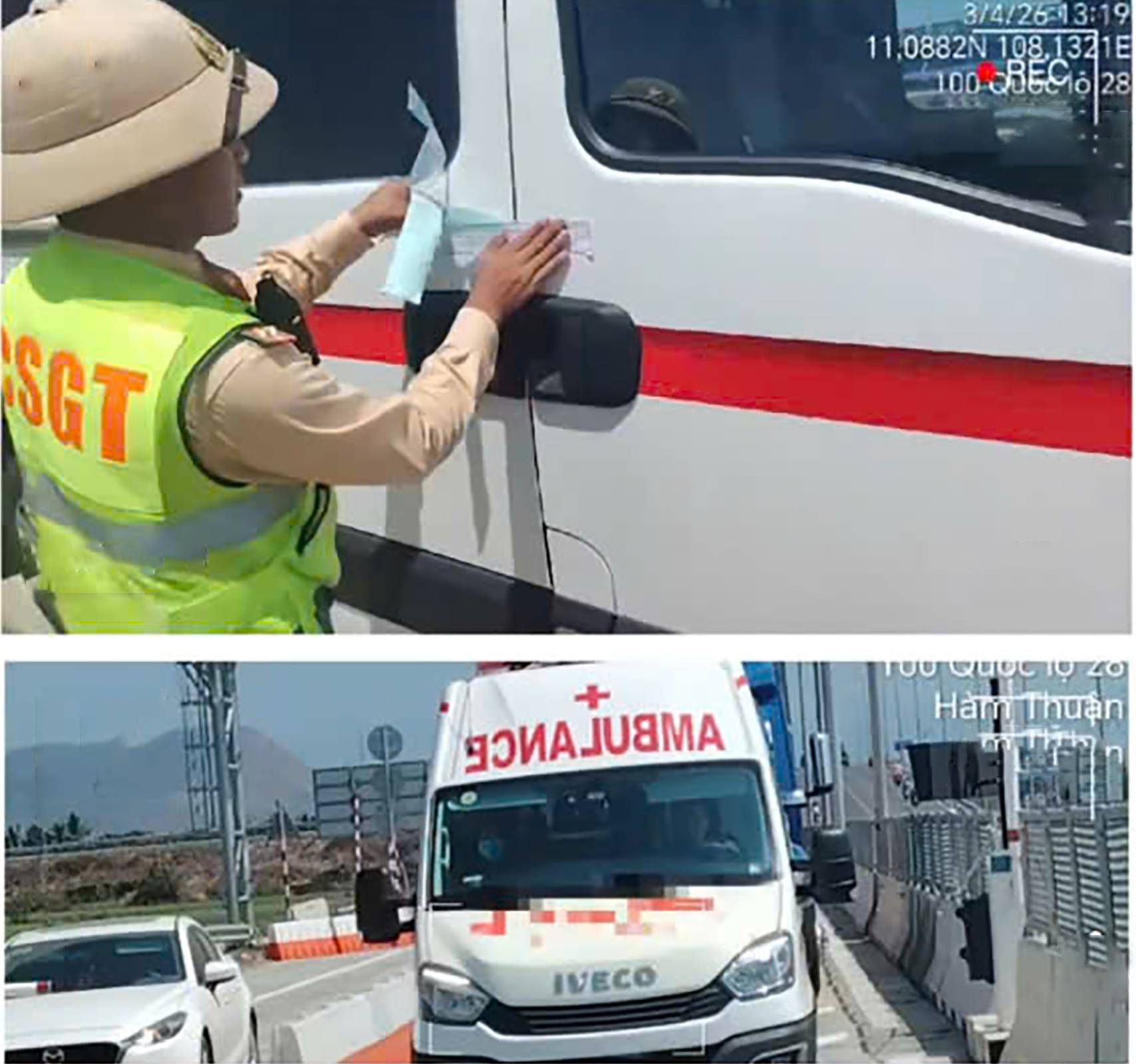 Ngày 4/4, Đội Cảnh sát giao thông đường bộ cao tốc số 6 (Phòng 6, Cục Cảnh sát giao thông) cho biết, đơn vị vừa lập biên bản xử lý một xe cứu thương vi phạm khi lưu thông trên tuyến cao tốc Vĩnh Hảo - Phan Thiết.