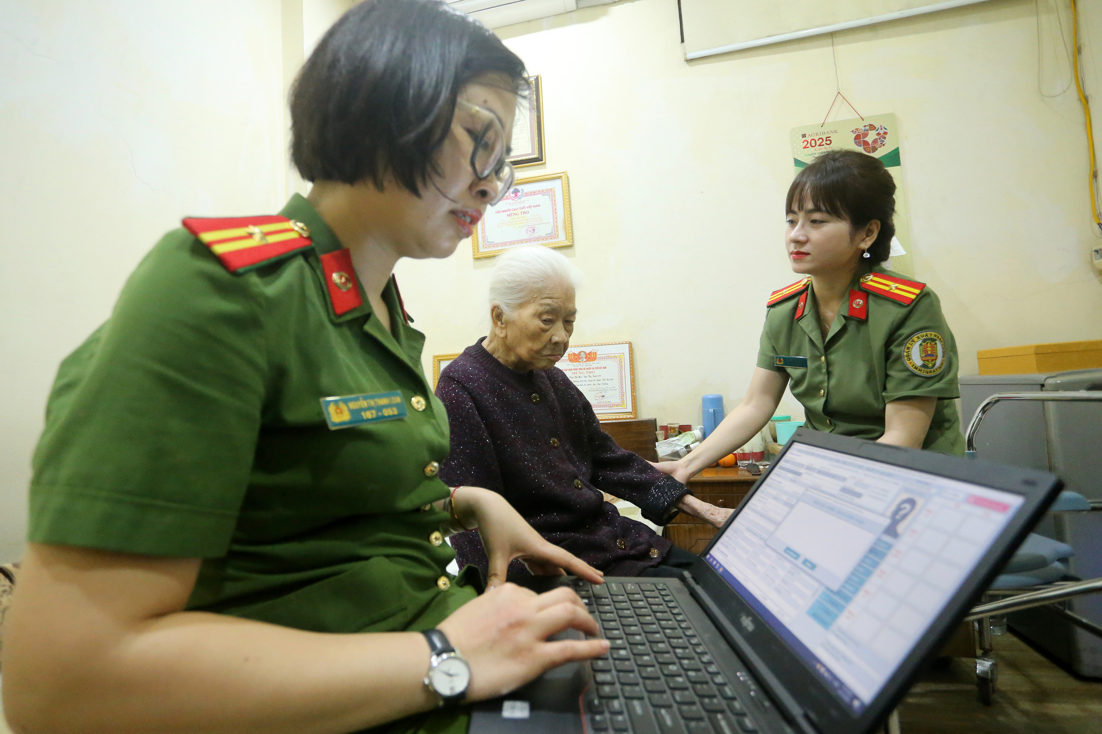 Ngay sau khi tổ công tác của Phòng Cảnh sát Quản lý hành chính về trật tự xã hội hoàn tất công việc của mình, những chiến sĩ của Phòng Quản lý xuất nhập cảnh tiến hành nhập dữ liệu để làm thủ tục cấp hộ chiếu