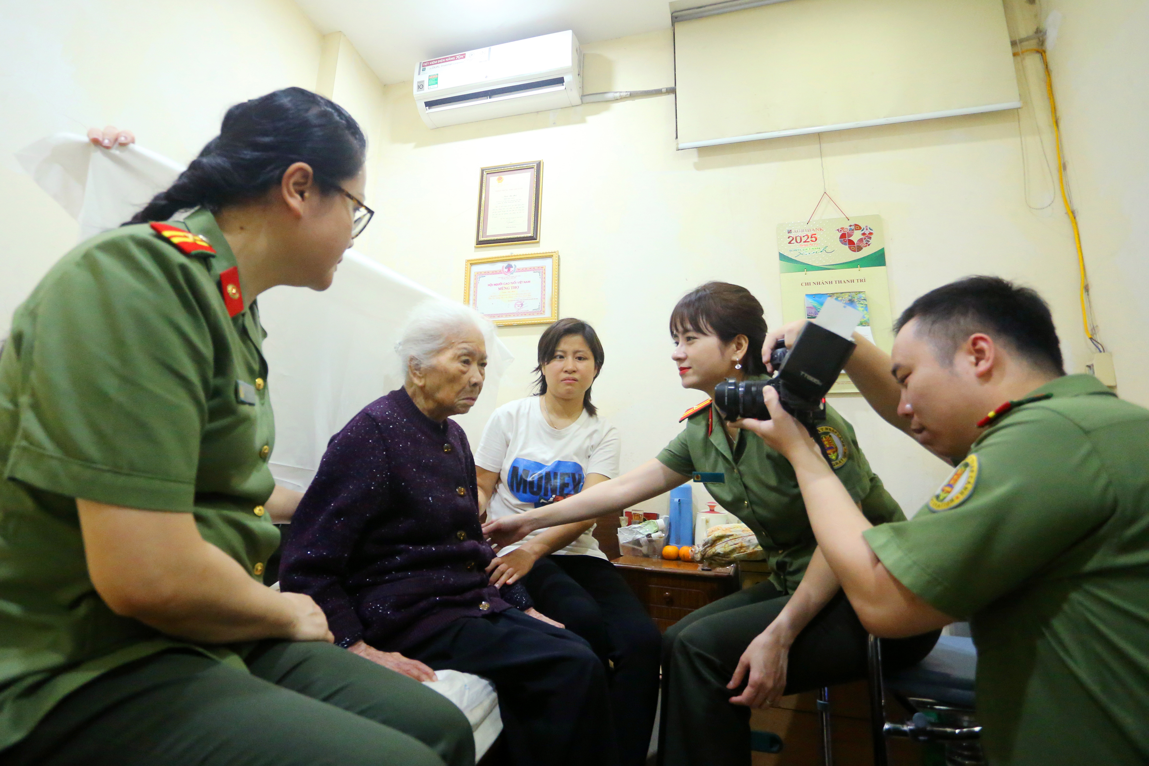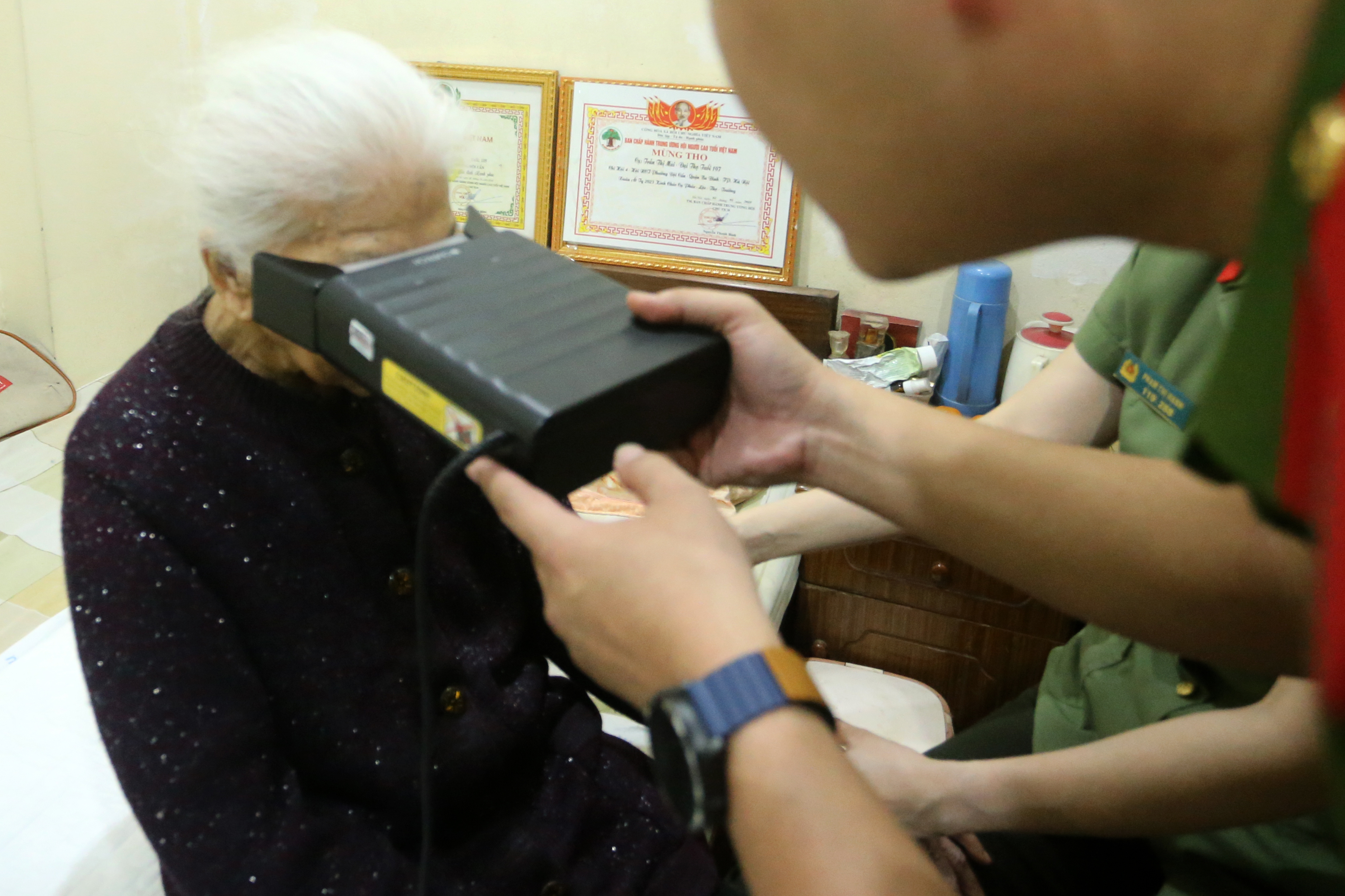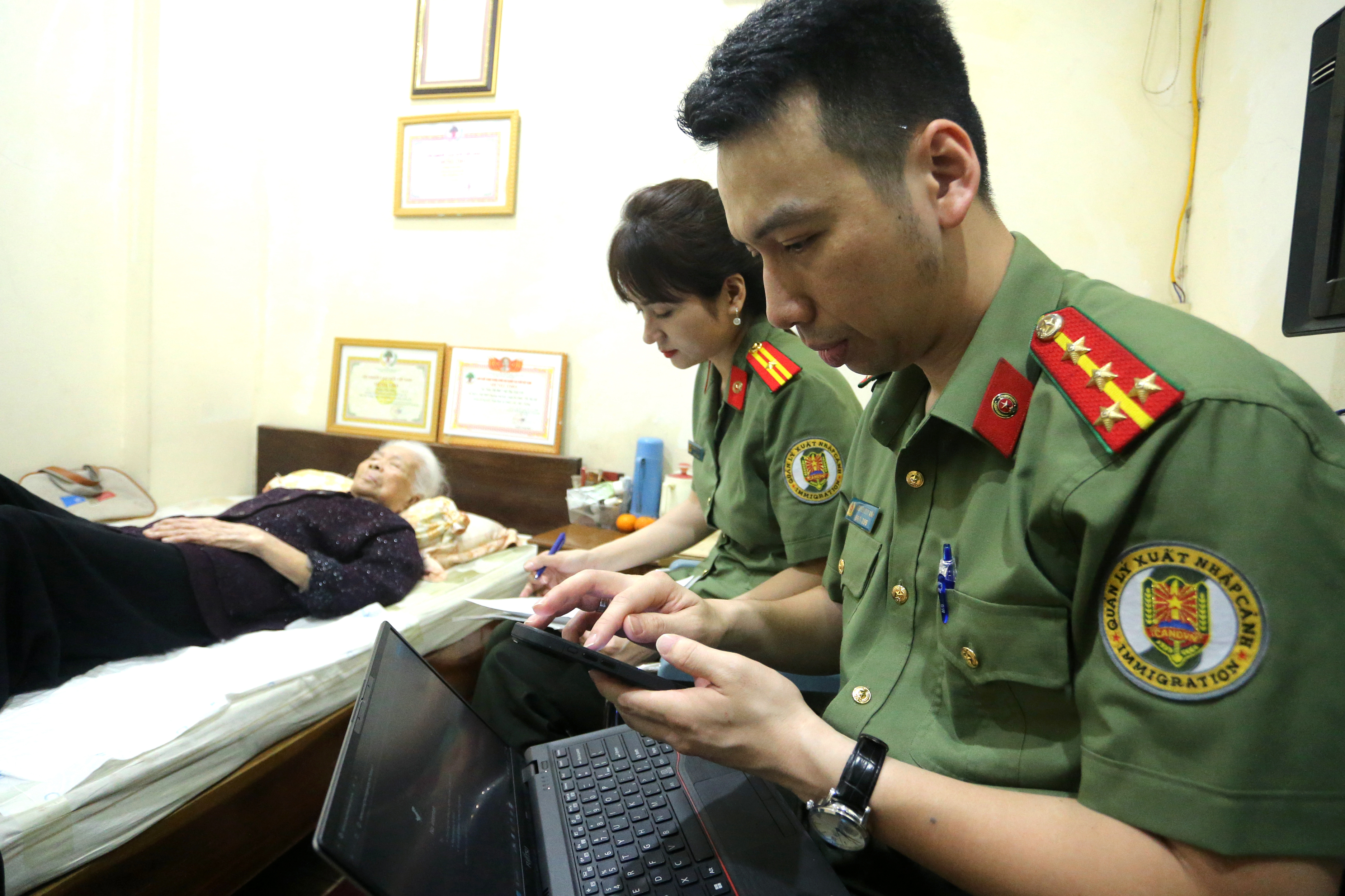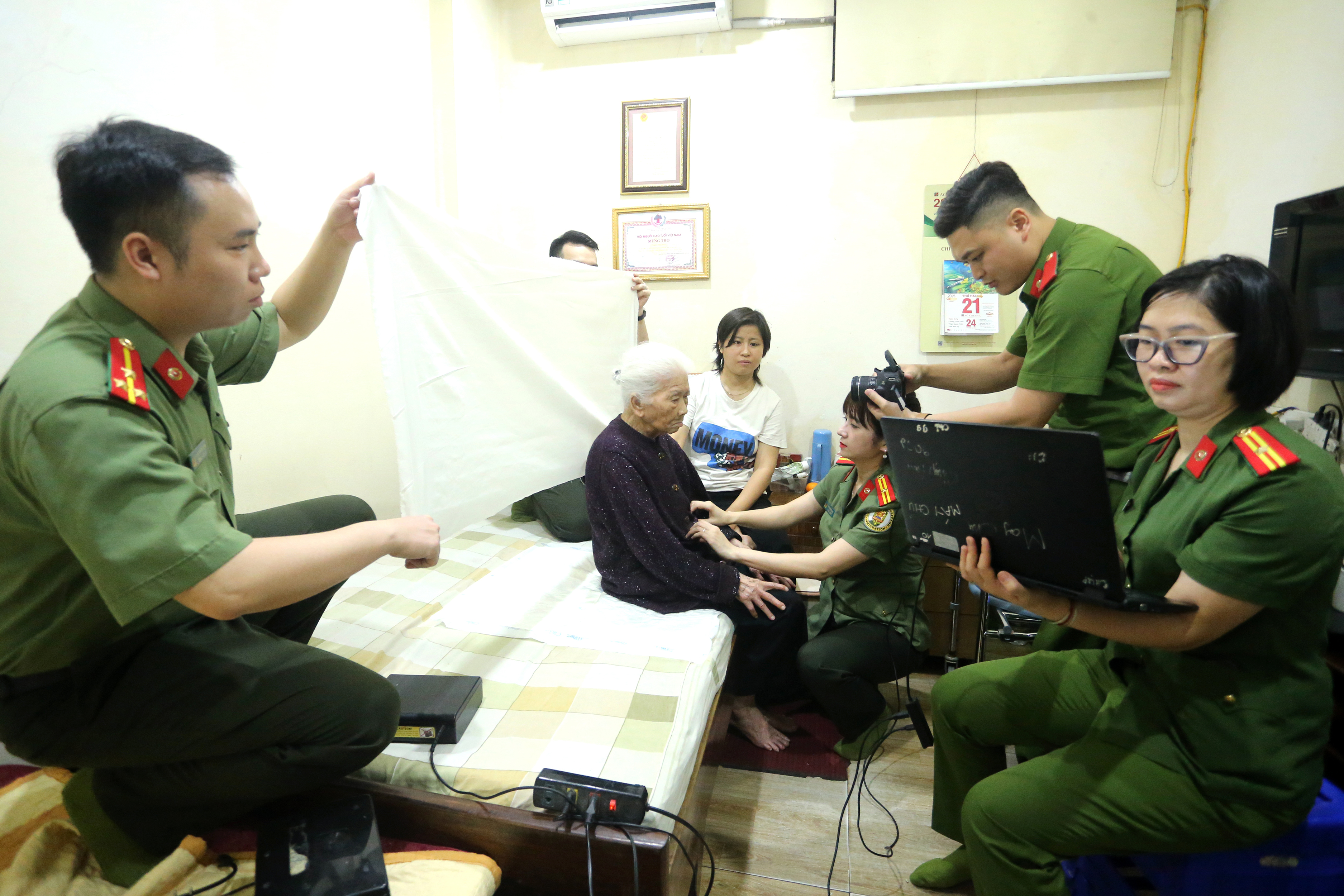 Trước đó, sáng 21/4, 2 tổ công tác của Phòng Cảnh sát Quản lý hành chính về trật tự xã hội cùng Phòng Quản lý xuất nhập cảnh CATP Hà Nội đã chuẩn bị các thiết bị cần thiết đến nhà cụ Mùi để làm thủ tục