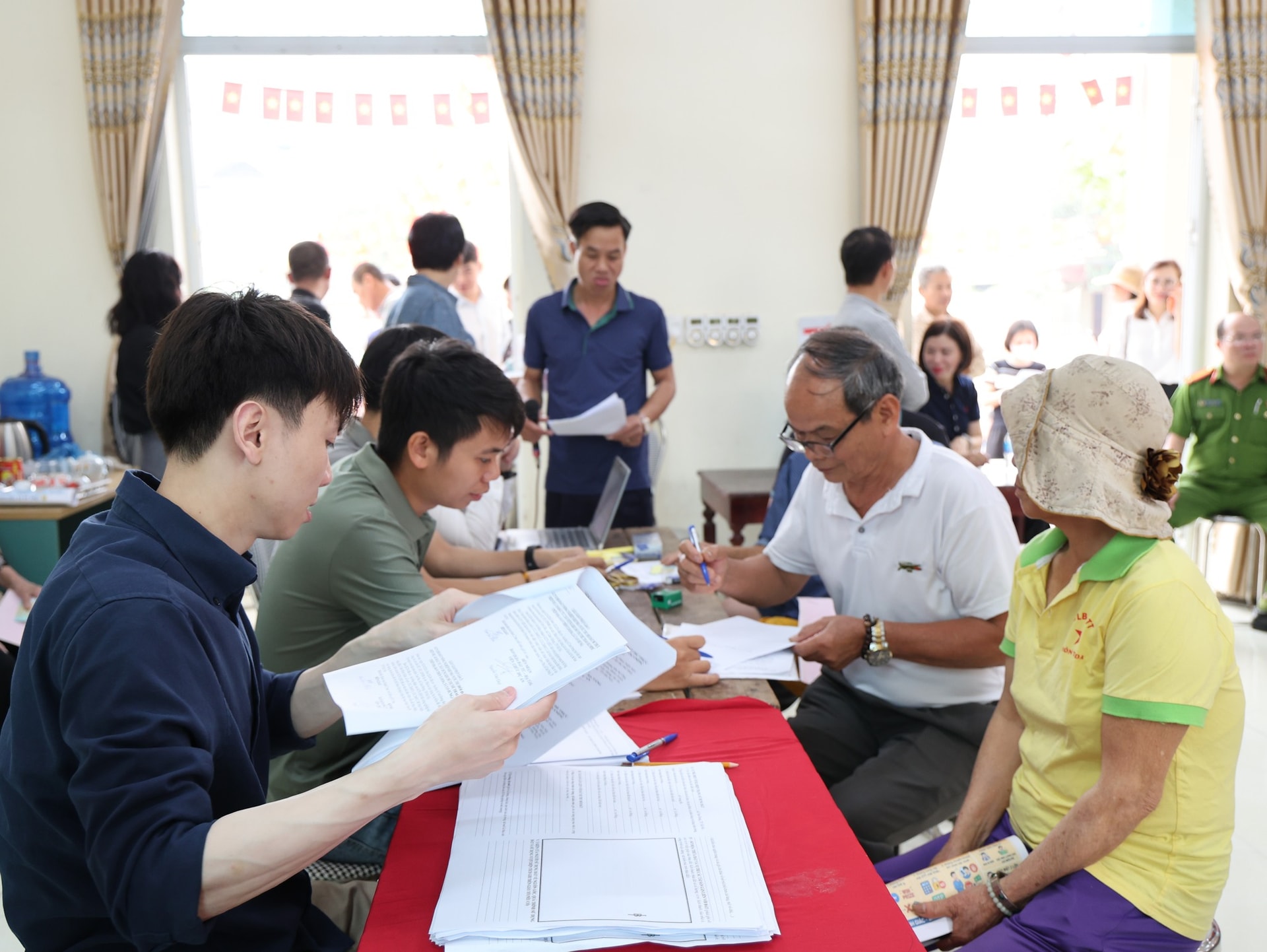 Công tác tổ chức chi trả hỗ trợ GPMB trên địa bàn xã Tam Hưng được thực hiện bài bản, khoa học; quy trình tiếp nhận và xử lý hồ sơ được phân chia theo khung giờ cụ thể, bảo đảm thuận tiện, minh bạch. Ảnh: PV