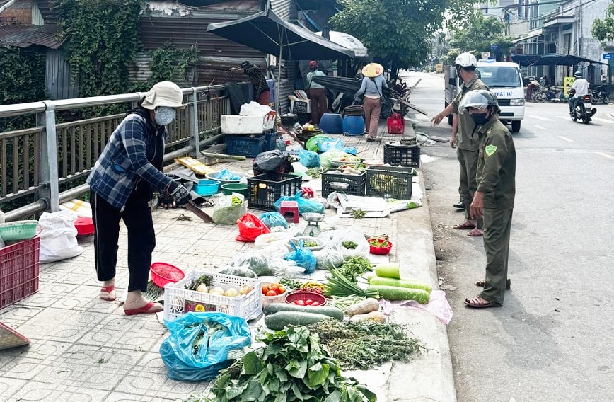 Lực lượng chức năng phường Tam Kỳ ra quân chấn chỉnh, lập lại trật tự đô thị. Ảnh: UBND phường Tam Kỳ