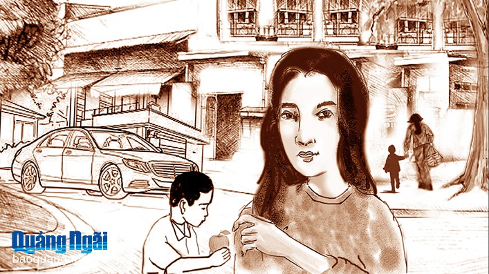 Hùng ngồi thu lu ở góc chiếc chiếu cũ, đôi chân gầy đung đưa một cách vô định. Đôi mắt cậu tròn xoe dán chặt vào chiếc nhẫn, như thể đó là một thứ không thuộc về thế giới tăm tối của mình. Mái tóc rối bù rủ xuống ngang trán, che khuất gần hết ánh nhìn chao nghiêng: “Mẹ ơi... Bà ấy tốt lắm. Hay là mình... mình trả lại đi mẹ?”. Yến không đáp, chậm rãi mở tờ giấy nhỏ mà người phụ nữ kia đã đưa. Mùi nước hoa thoang thoảng còn lưu lại trên dòng chữ gọn gàng, nắn nót: “Nếu cần sự giúp đỡ, hãy gọi cho tôi!”.
