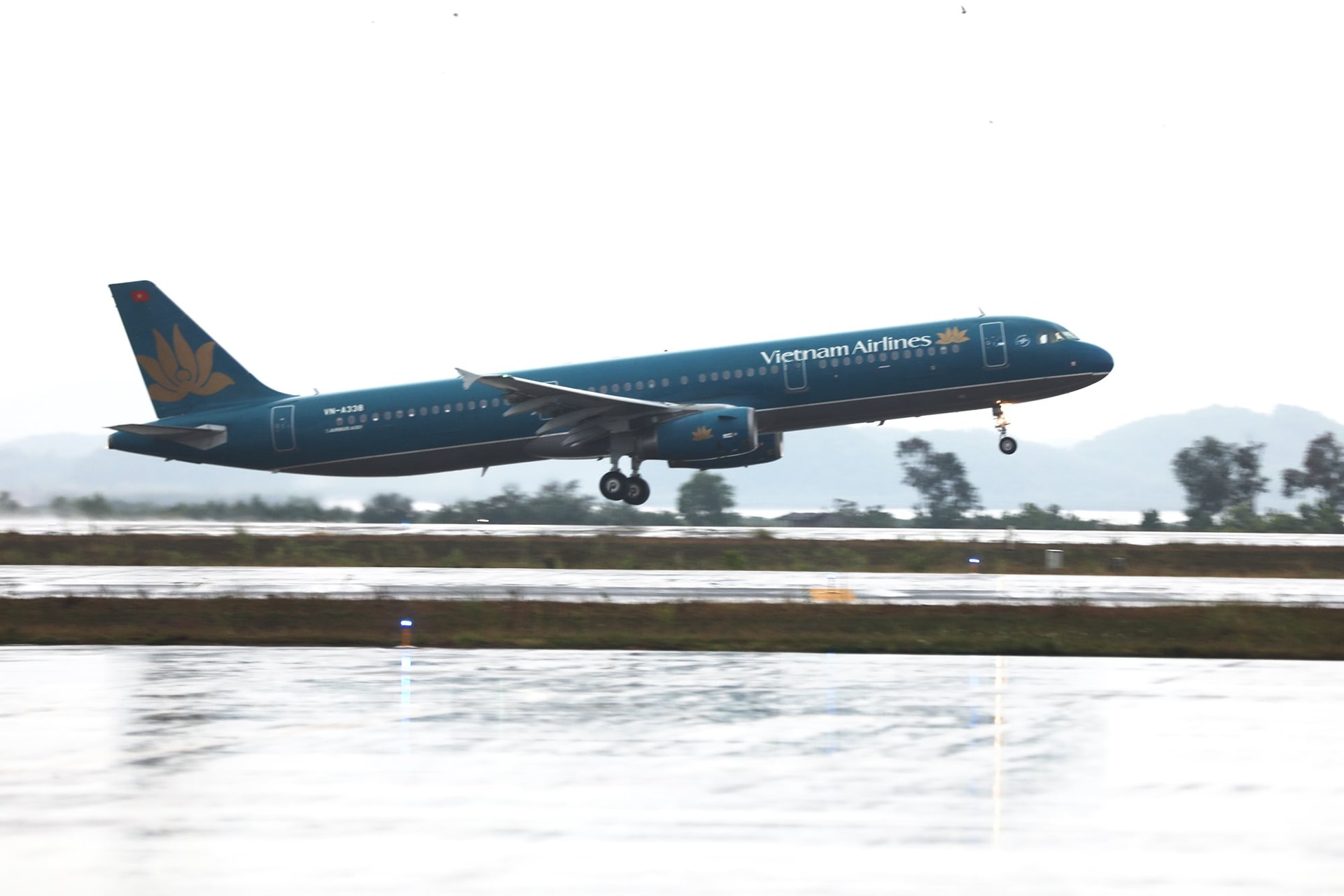 Máy bay của Hãng hàng không Quốc gia Việt Nam hạ cánh tại Cảng hàng không quốc tế Vân Đồn.