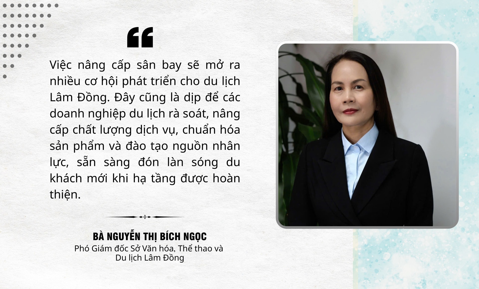 Ở góc nhìn doanh nghiệp, ông Lê Tăng Trọng Nghĩa, đại diện một doanh nghiệp dịch vụ du lịch tại Đà Lạt, Phó Chủ tịch Hội Doanh nhân trẻ Lâm Đồng cho rằng, việc tạm dừng khai thác sân bay chắc chắn ảnh hưởng đến lượng khách từ các thị trường xa. Tuy nhiên, đây cũng là khoảng thời gian để doanh nghiệp điều chỉnh chiến lược phát triển.