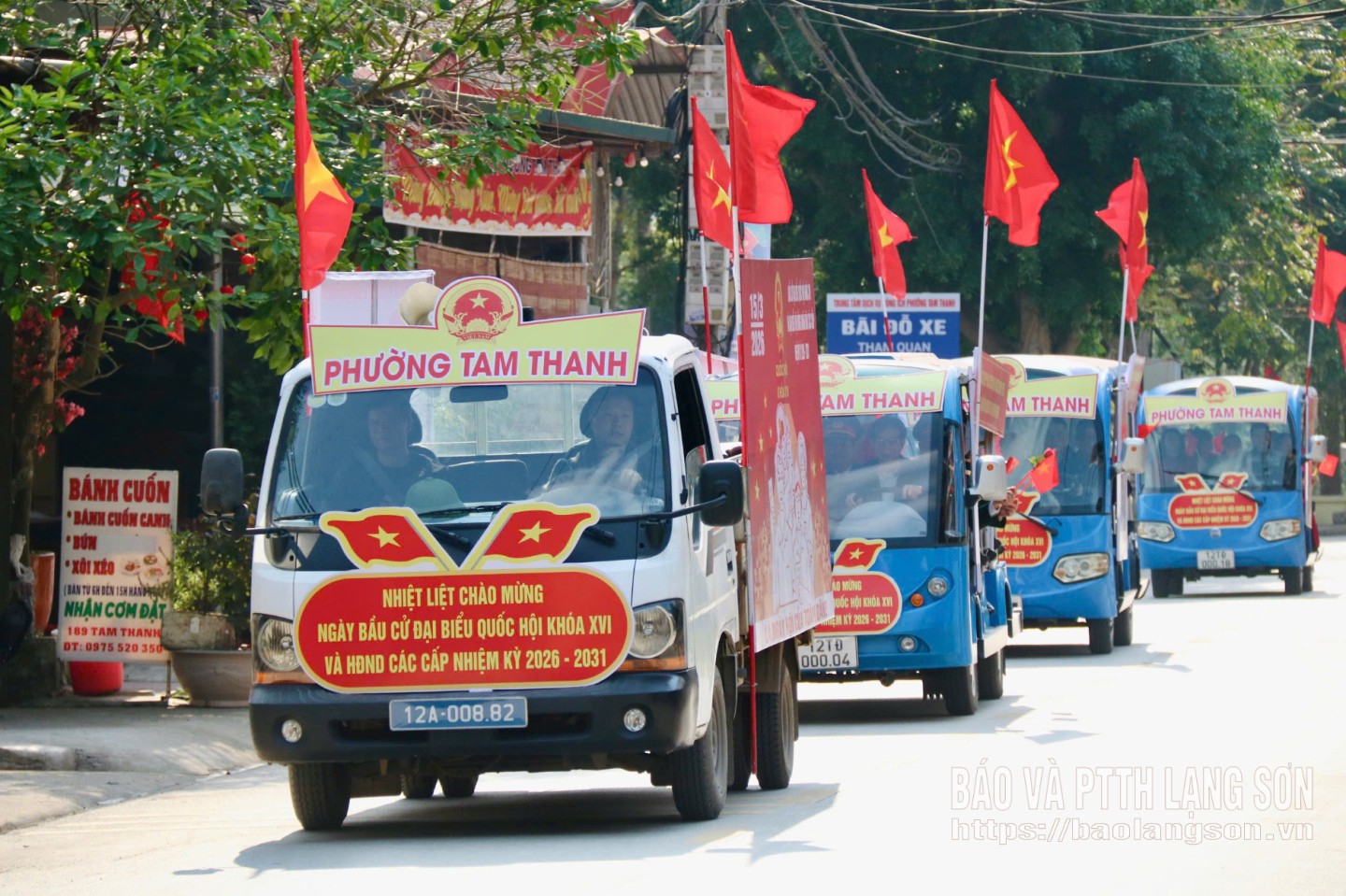 Đoàn xe tuyên truyền được trang bị loa phóng thanh, pa nô, áp phích, băng rôn và khẩu hiệu cổ động trực quan. Đoàn đã diễu hành qua các tuyến đường chính như: Tam Thanh, Lê Hồng Phong, Nguyễn Phi Khanh, Trần Đăng Ninh…