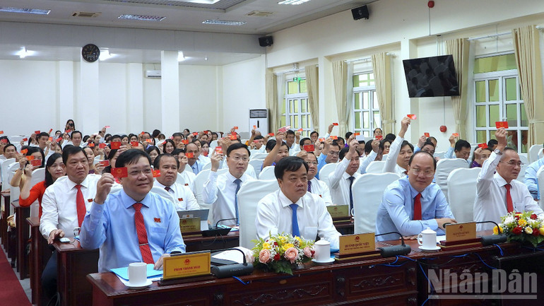 Các đại biểu Hội đồng nhân dân tỉnh Cà Mau biểu quyết thông qua một số vấn đề quan trọng về nhân sự.
