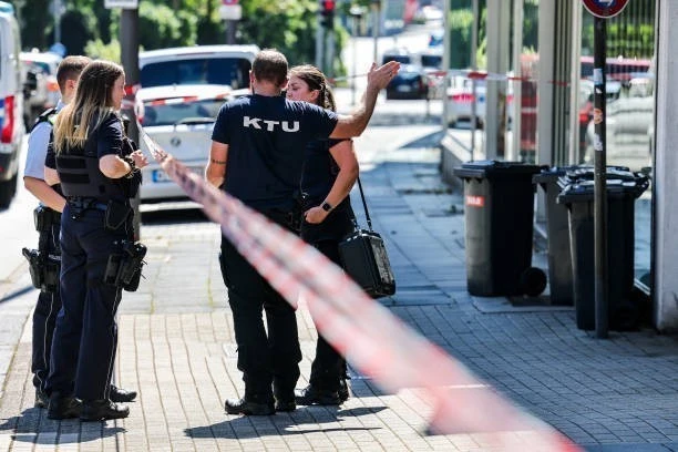 Cảnh sát điều tra tại hiện trường một vụ tấn công bằng dao ở Đức. (Ảnh: Getty Images/TTXVN)
