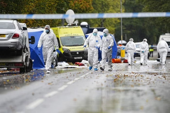 Cảnh sát thừa nhận việc bắn nhầm khiến dân thường thiệt mạng trong vụ tấn công khủng bố tại giáo đường Do Thái ở Manchester – Anh hôm 2-10. Ảnh: Xinhua