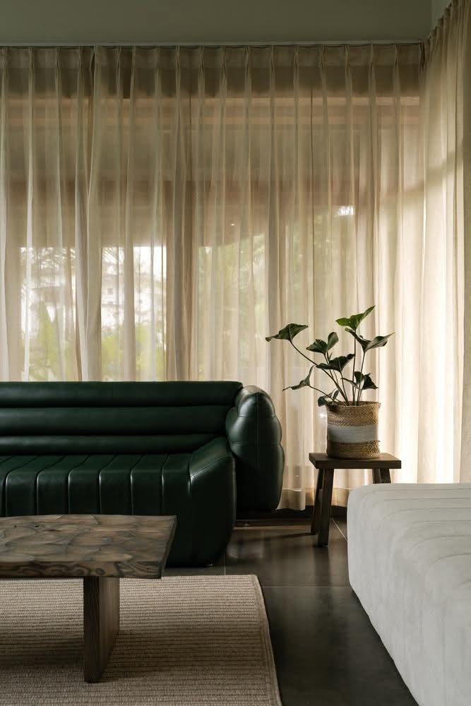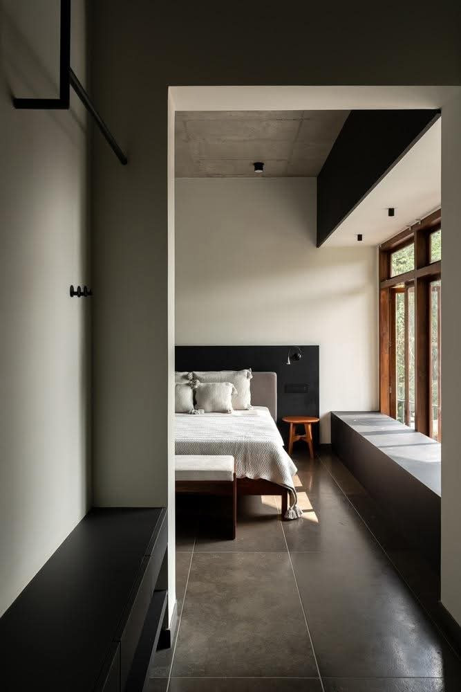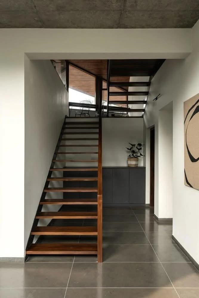 Bố cục linh hoạt theo hình dạng đất, các khoảng mở được tạo ra khéo léo để đón sáng và gió tự nhiên, mang lại không gian sống thoáng đãng và giàu trải nghiệm.