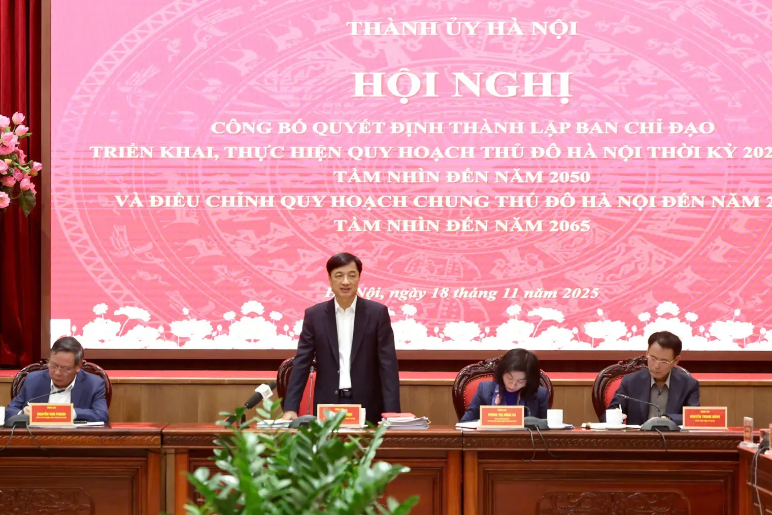 Tại Hội nghị, Chánh Văn phòng Thành ủy Hà Nội Trần Thanh Hà đã công bố 2 quyết định thành lập Ban Chỉ đạo và Tổ giúp việc Ban Chỉ đạo triển khai, thực hiện quy hoạch Thủ đô Hà Nội thời kỳ 2021 – 2030, tầm nhìn đến năm 2050 và Quy hoạch chung Thủ đô Hà Nội đến năm 2045, tầm nhìn đến năm 2065.