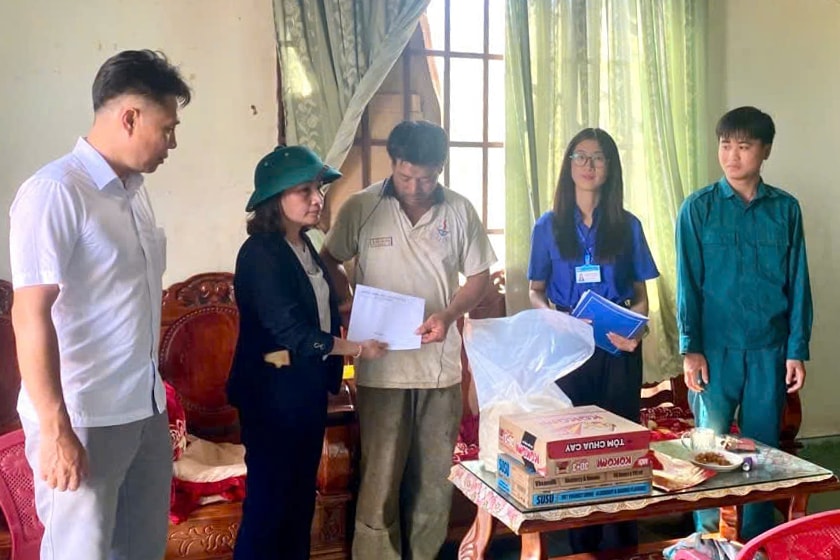 Bí thư Đảng ủy xã Tân Hà Lâm Hà đã đến thăm hỏi, tặng quà cho các gia đình bị ảnh hưởng mưa lũ, sạt lở trên địa bàn