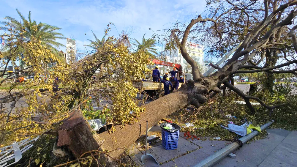 Theo ông Đào Lê Trung, do khối lượng công việc quá lớn nên Công ty CP Công viên cây xanh và chiếu sáng đô thị Quy Nhơn phải phân loại, ưu tiên khắc phục những đoạn đường chính, những cây ngã đổ vào nhà dân, ngã ra đường để đảm bảo an toàn, thông thoáng.