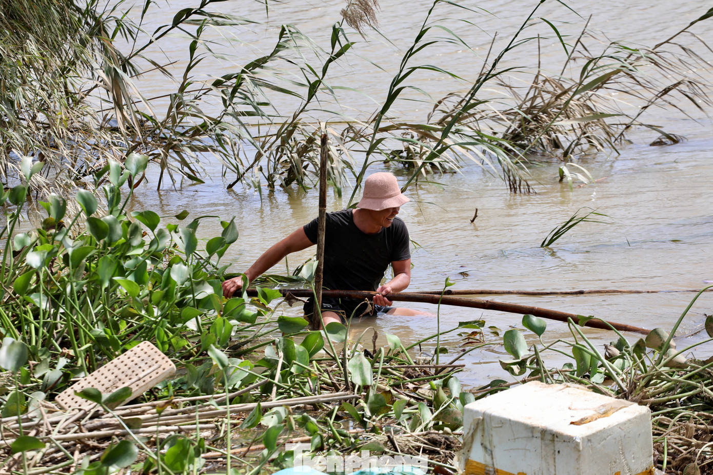 Bà Bùi Thị Thu Phương (thôn Tân Lập) cho biết chưa bao giờ chứng kiến trận lũ nào dữ dội và tàn phá như lần này. Tranh thủ khi trời hửng nắng, bà ra đồng thu hoạch dọn rác.