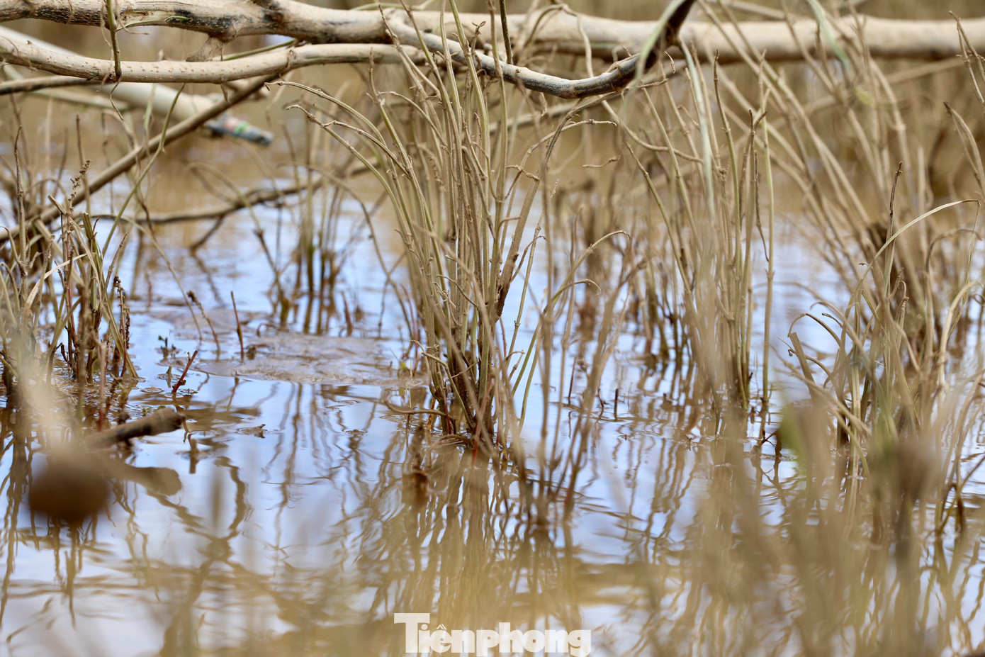 Rau thơm chỉ còn thân cây bị bùn non bám.