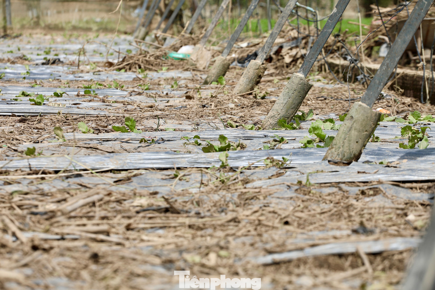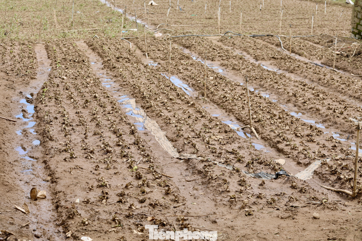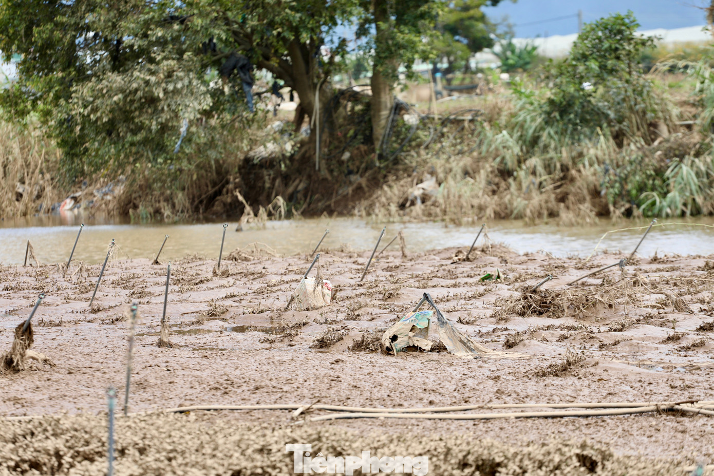 Những cánh đồng rau màu xanh mướt chỉ còn lại bùn đất và rác.