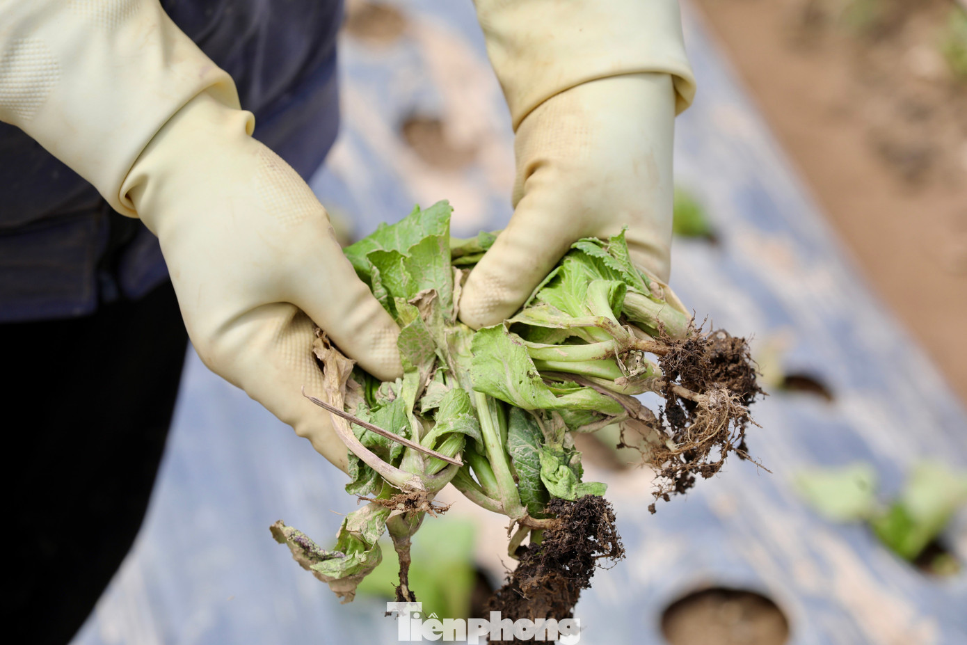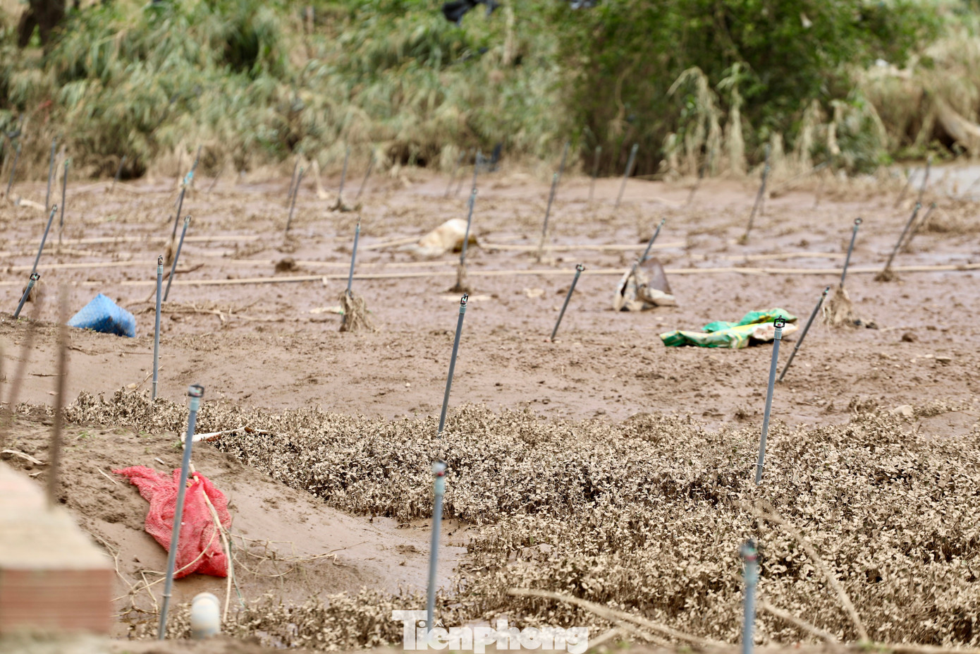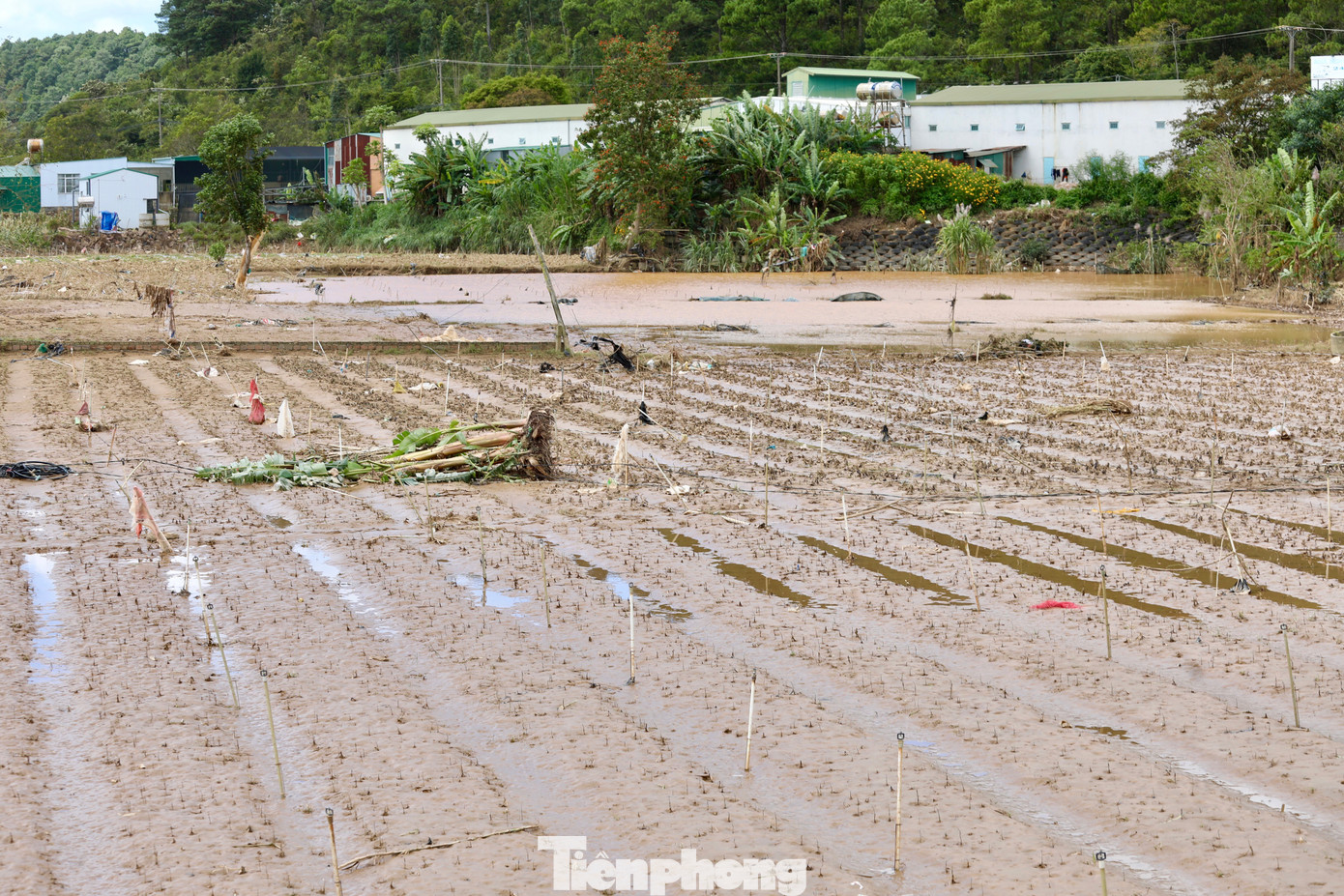 Những cánh đồng rau màu xanh mướt chỉ còn lại bùn đất và rác.