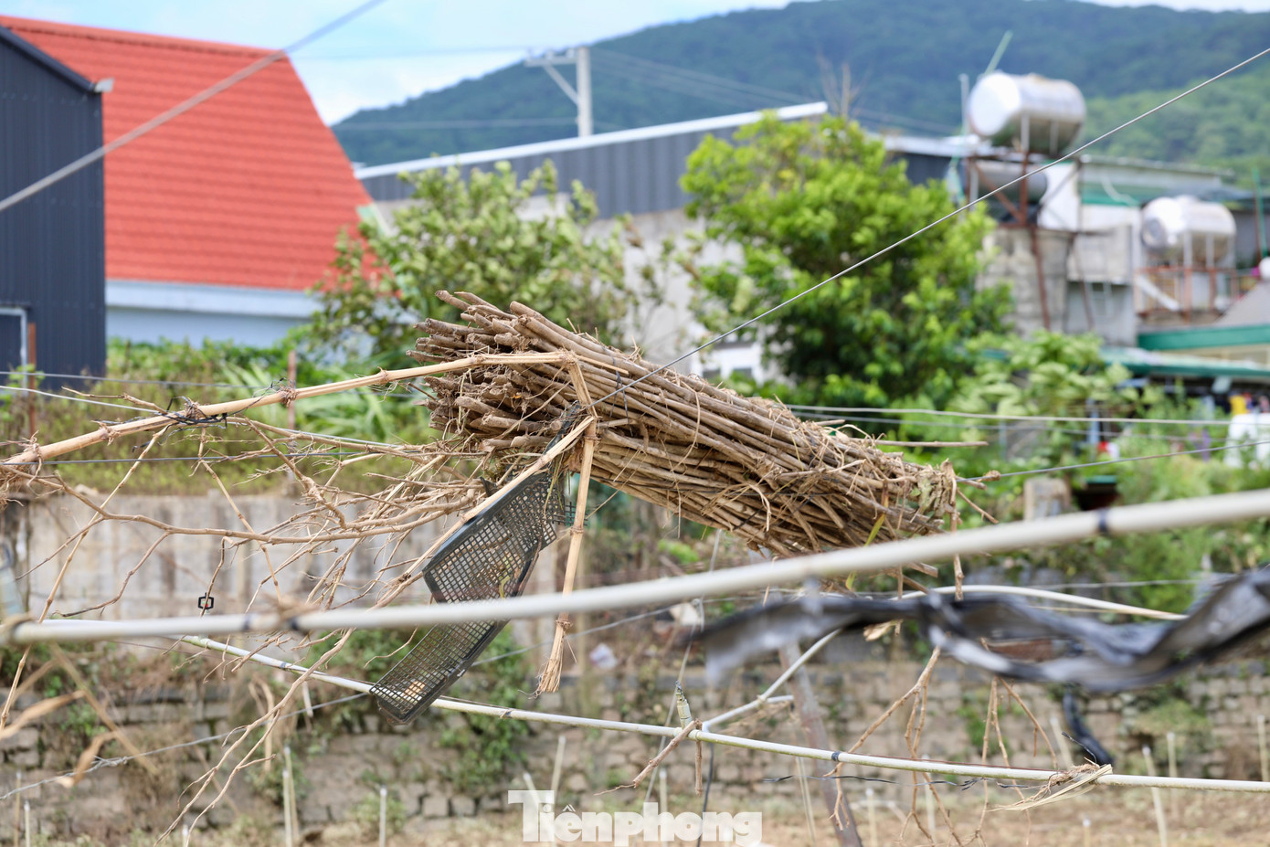 Nhà lồng, nhà kính còn lại béc tưới phun sương.