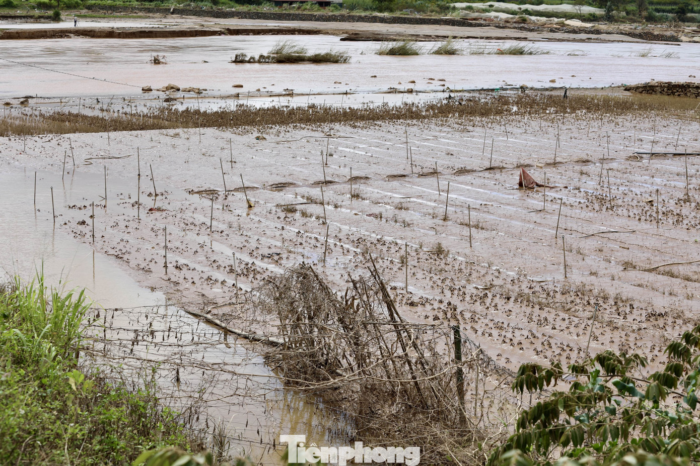 Theo ghi nhận của phóng viên, ngày 24/11, mực nước trên sông Đa Nhim đã rút, để lại cảnh tượng hoang tàn ở "thủ phủ rau" Lâm Đồng - xã Ka Đô.