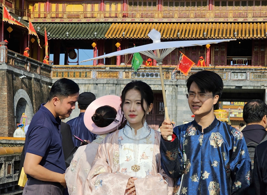 Những du khách đầu tiên "xông đất" Hoàng cung Huế trong sáng 1/1