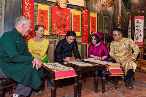 Du khách nước ngoài thích thú với những phong tục đón Tết cổ truyền Việt Nam.