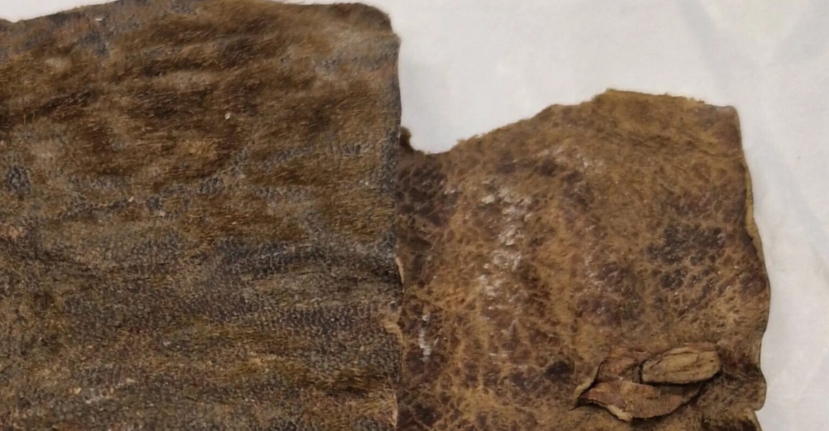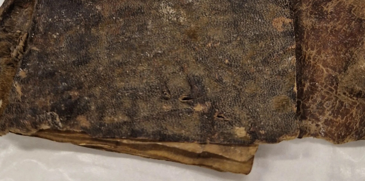 Các mẫu bìa bản thảo và giấy da đã được lấy để phân tích protein và DNA nhằm xác nhận nguồn gốc động vật. Ảnh: @Bảo Tàng Quốc Gia Na Uy.