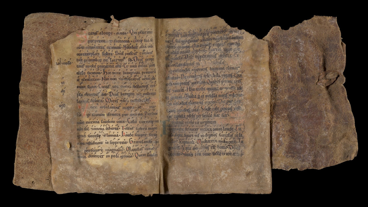 Các kỹ thuật thăm dò, phân tích khảo cổ học chuyên sâu cho thấy, tám trang giấy da được đóng bằng da động vật tạo thành một bản thảo cổ độc đáo. Ảnh: @Bảo Tàng Quốc Gia Na Uy.
