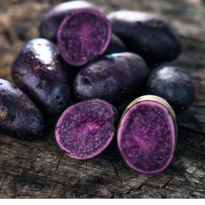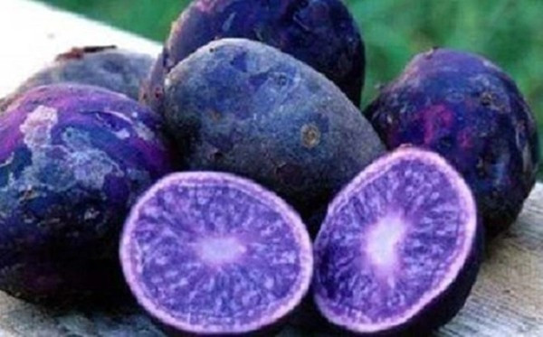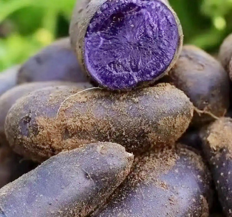 Khoai tây tím là giống khoai có có vỏ tím gần như đen và thịt màu tím sáng, nguồn gốc từ Nam Mỹ. Nhìn bên ngoài, chúng chẳng khác nào “con lai” của khoai tây và khoai lang tím. Ảnh: Healthline