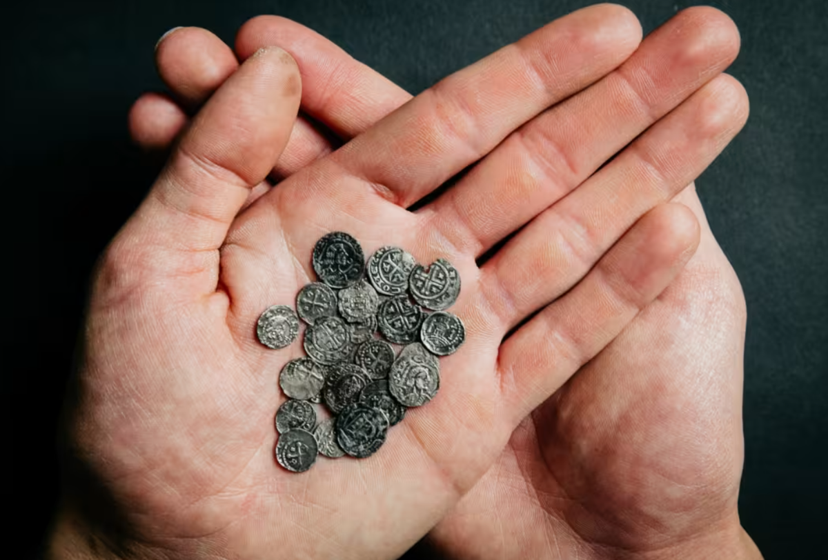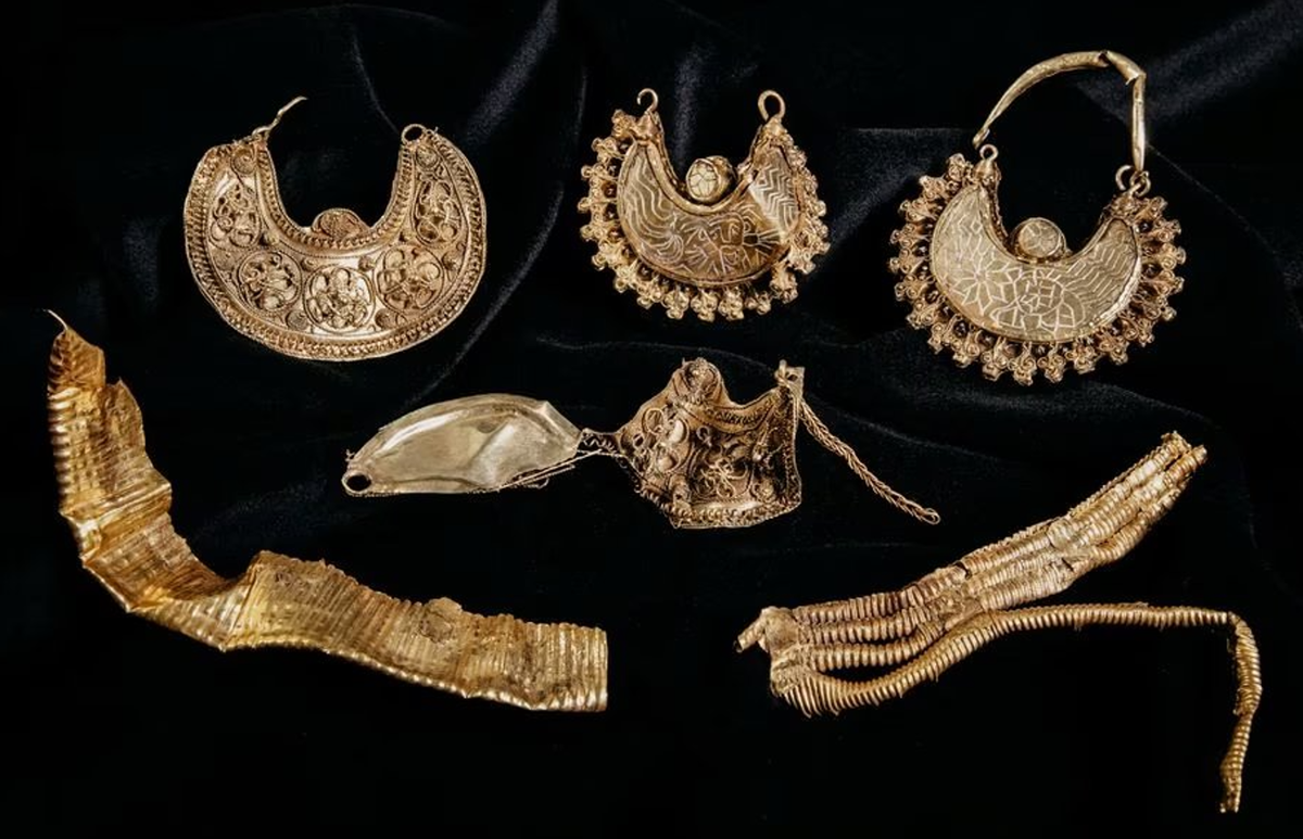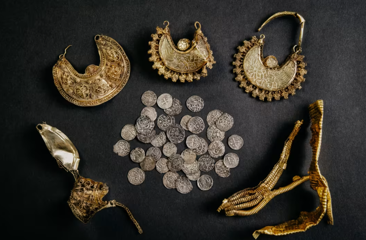 Bảo tàng Cổ vật Quốc gia Hà Lan cho biết, kho báu này chứa 39 đồng bạc, hai dải lá vàng và bốn mặt dây chuyền bằng vàng tuyệt đẹp. Ảnh: @Lorenzo Ruijter.