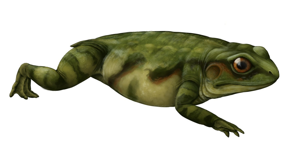 Sống cách đây hơn 250 triệu năm. Triadobatrachus từng tồn tại trong kỷ Trias sớm, ngay sau sự kiện tuyệt chủng Permi – Trias, thời kỳ mà Trái Đất phục hồi sau thảm họa sinh học lớn nhất lịch sử. Ảnh: Pinterest.