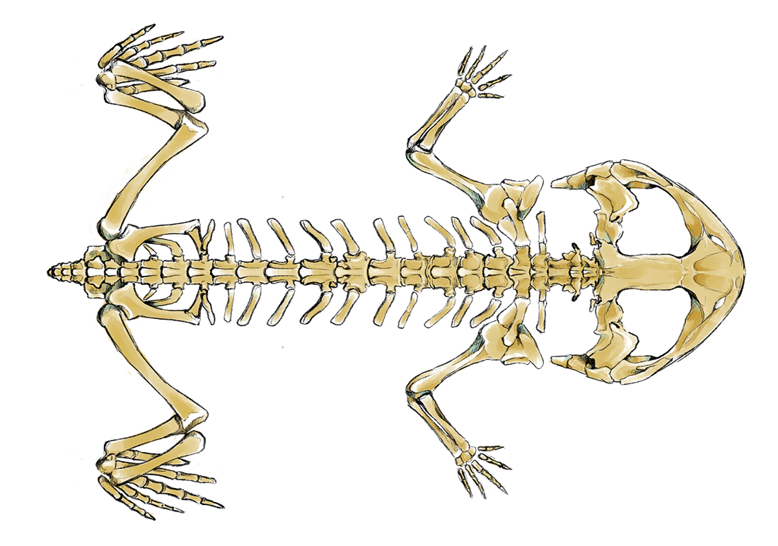 Chưa thể nhảy như ếch ngày nay. Dù có cơ thể tương tự ếch, Triadobatrachus vẫn chưa có khả năng bật nhảy mạnh mẽ do phần cột sống còn dài và thiếu cấu trúc xương chậu đặc trưng. Ảnh: googleusercontent.com.
