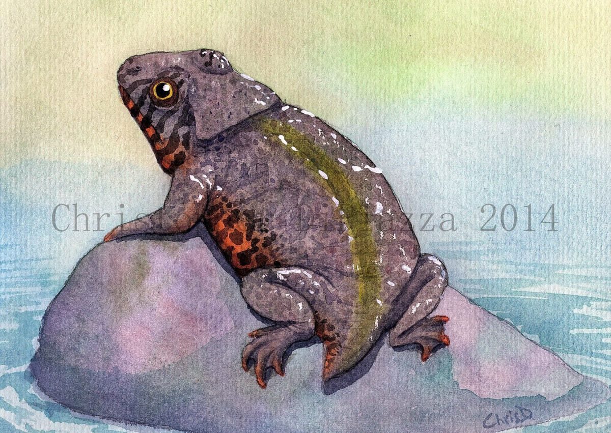 Hít thở và sống cả dưới nước lẫn trên cạn. Giống các loài lưỡng cư nguyên thủy khác, Triadobatrachus có thể hô hấp bằng cả da và phổi, thích nghi với môi trường bán thủy sinh. Ảnh: tumblr.com.
